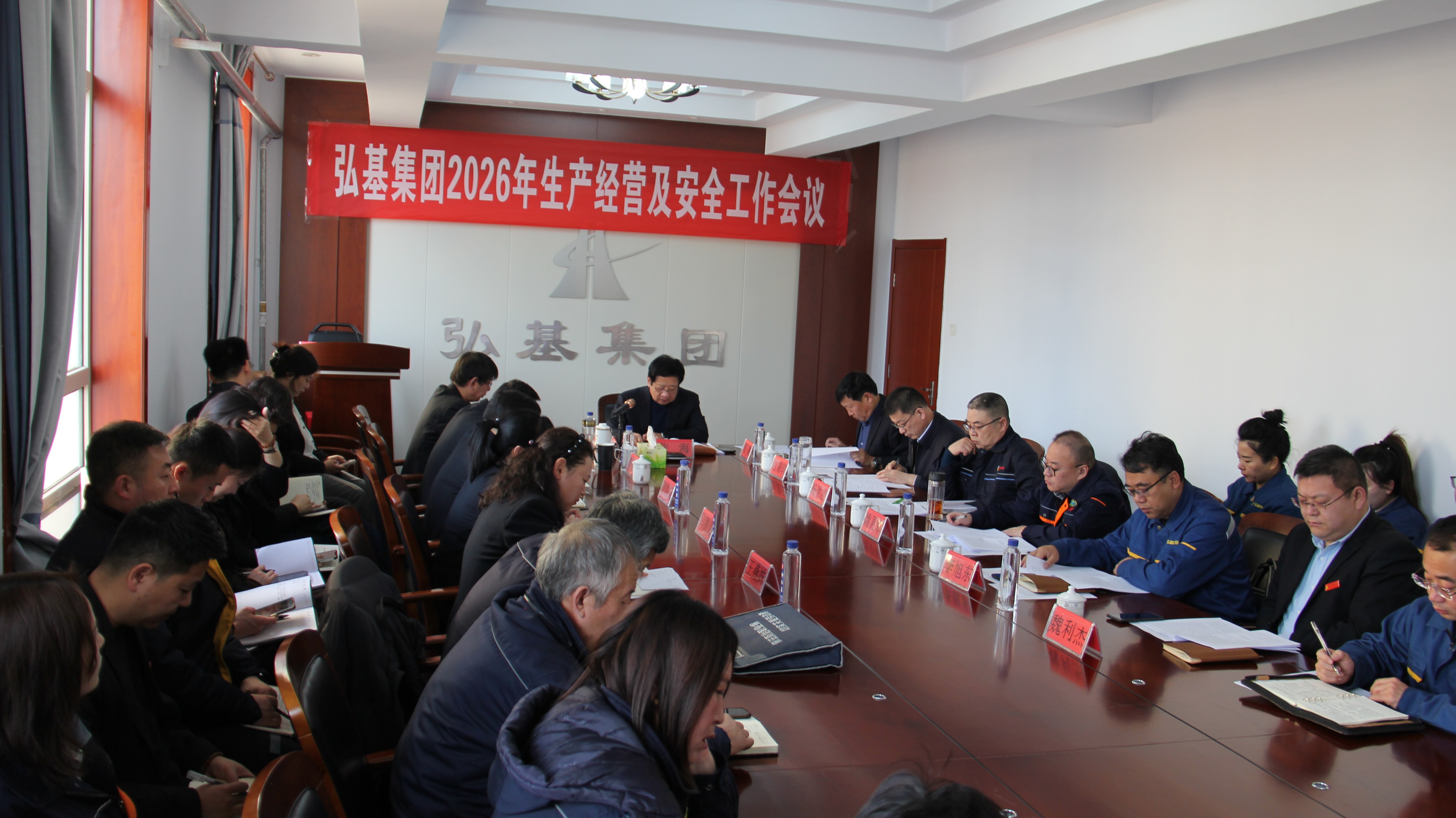 2月3日,弘基集团2026年生产经营及安全工作会议圆满召开,会议全面总结2025年生产经营业绩,客观分析当前发展形势,系统部署2026年生产经营目标和任务,为集团“十五五”发展良好开局凝聚奋进力量。会议采取远程视频方式,集团公司六楼会议室设主会场,各成员公司设分会场,集团领导班子、成员公司总经理以及集团、成员公司中层以上干部100余人参加会议。
