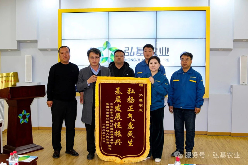 2025年4月17日,宣化区深井镇领导秦行虎、杨海行,样田庄村书记刘忠伟等领导一行,到弘基农业为公司送上锦旗,以表达当地农户通过马铃薯订单种植实现增收对公司的真切感谢。